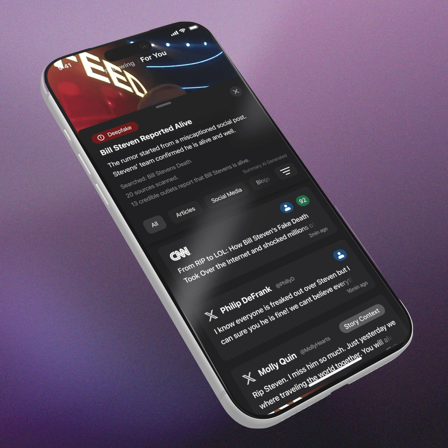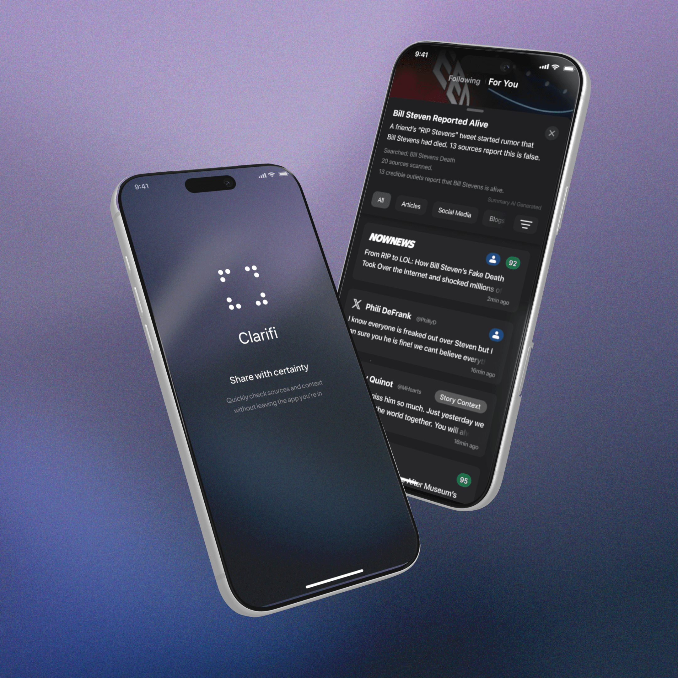 Clarify is accessed through the share sheet and surfaces relevant sources and background information connected to the content a user is viewing, helping them quickly verify information without leaving the page.