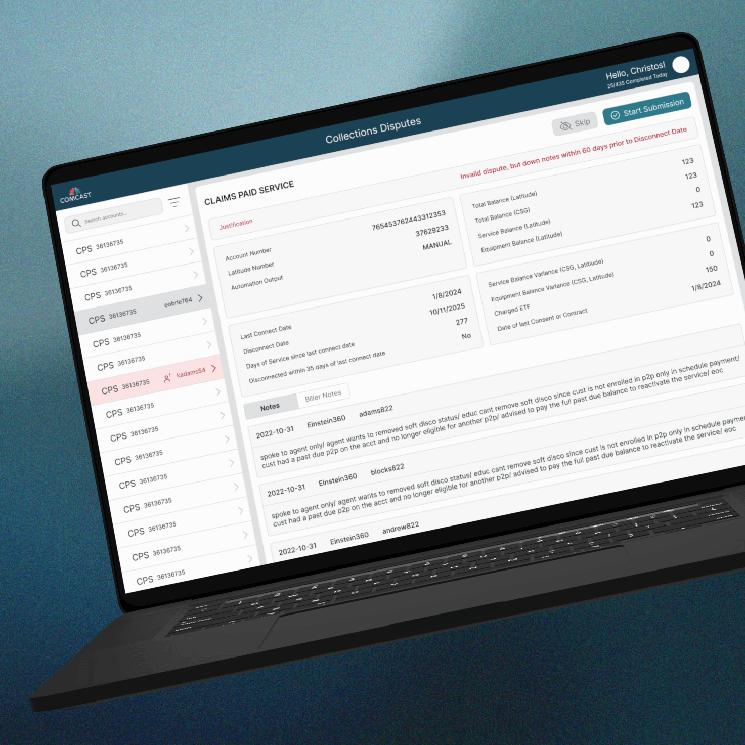 Debt Collections Dispute Review Internal Employee Dashboard