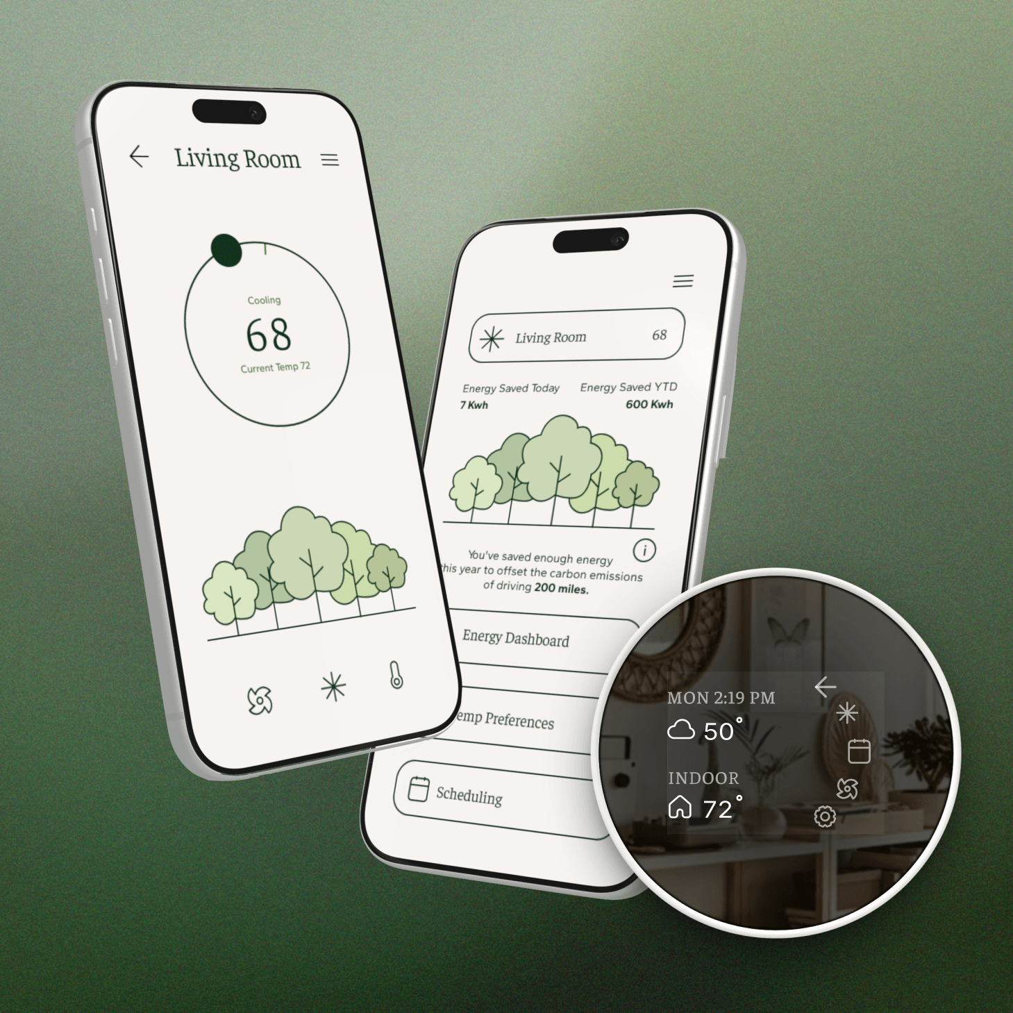 This project was approached through the lens of the eco-conscious minimalist, with the goal of redesigning the Nest thermostat interface to better align with values of simplicity, awareness, and intentional consumption of this audience group.