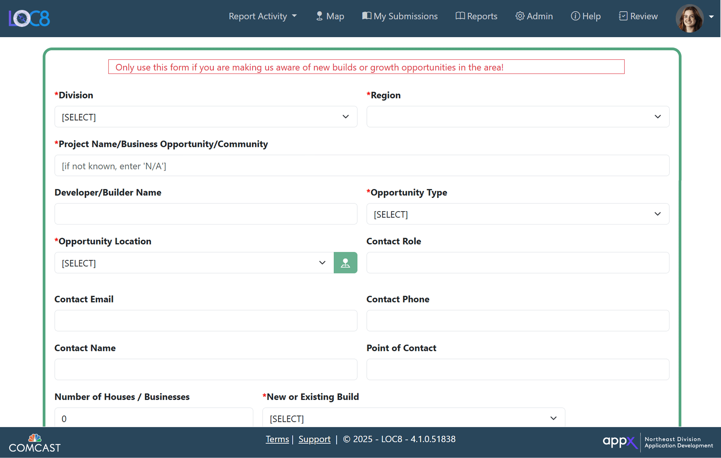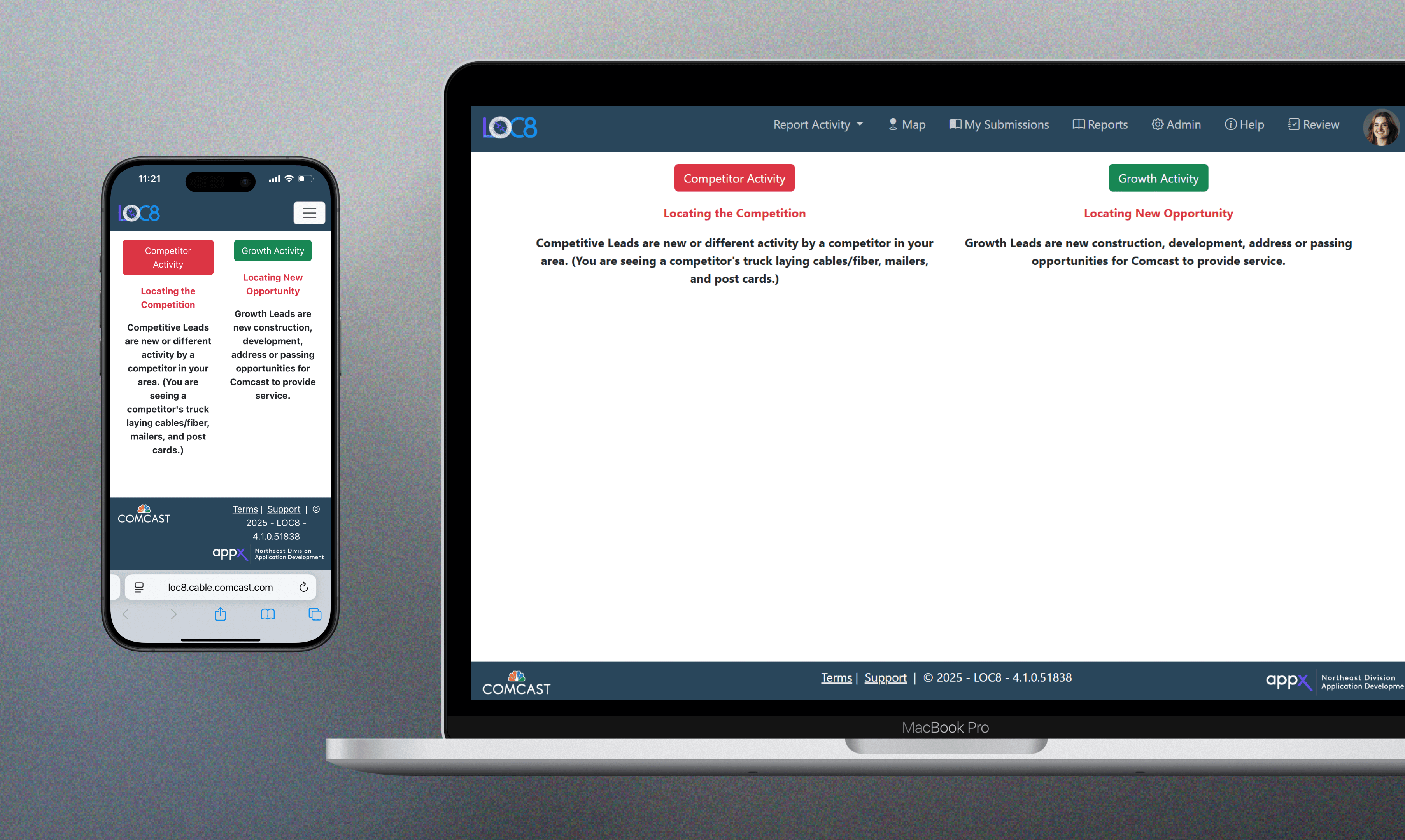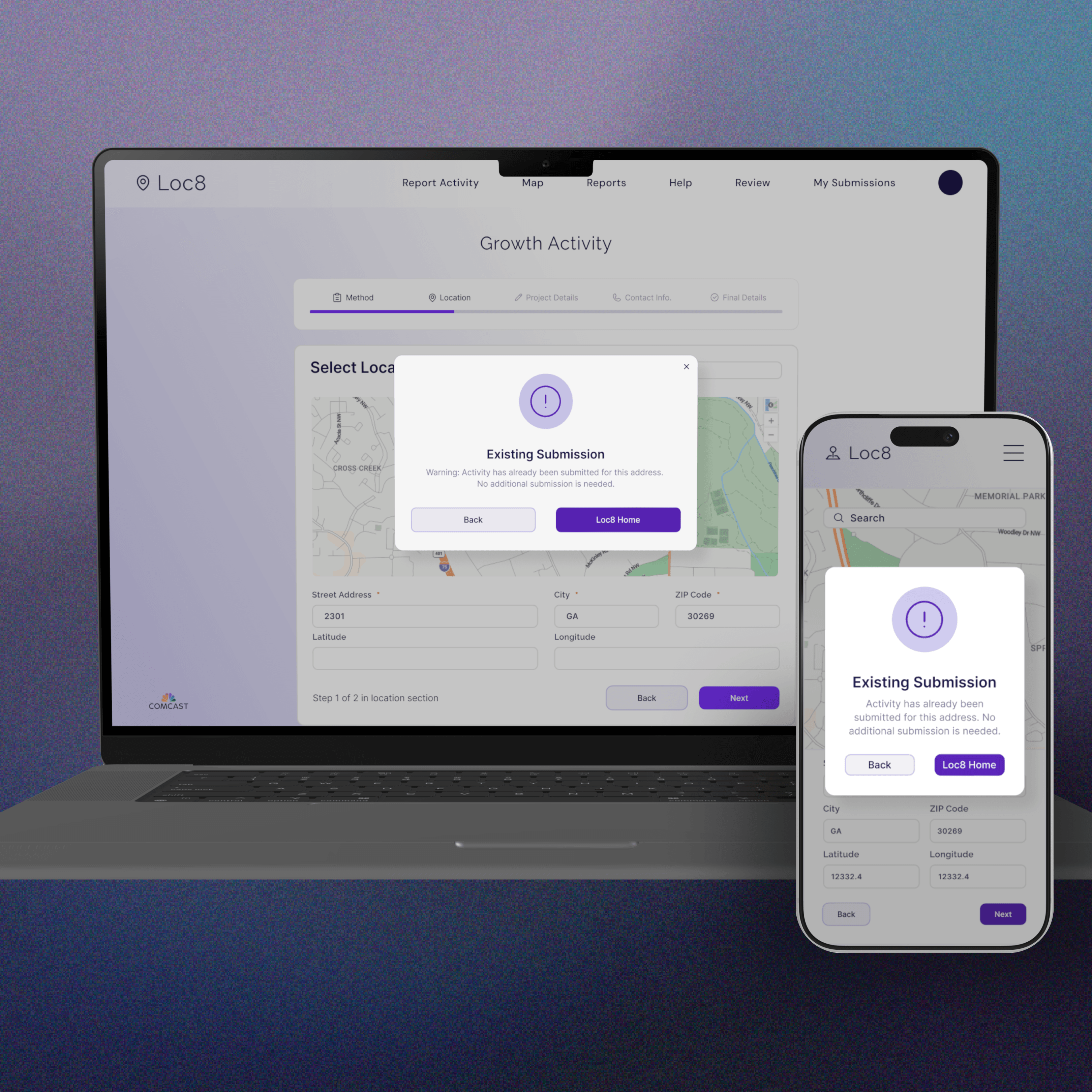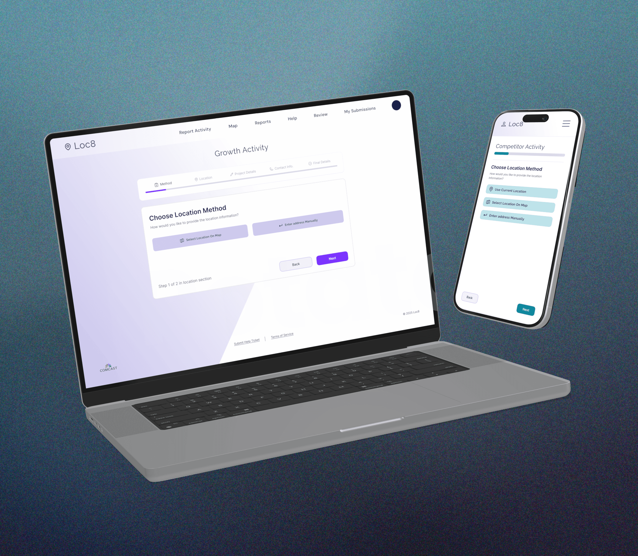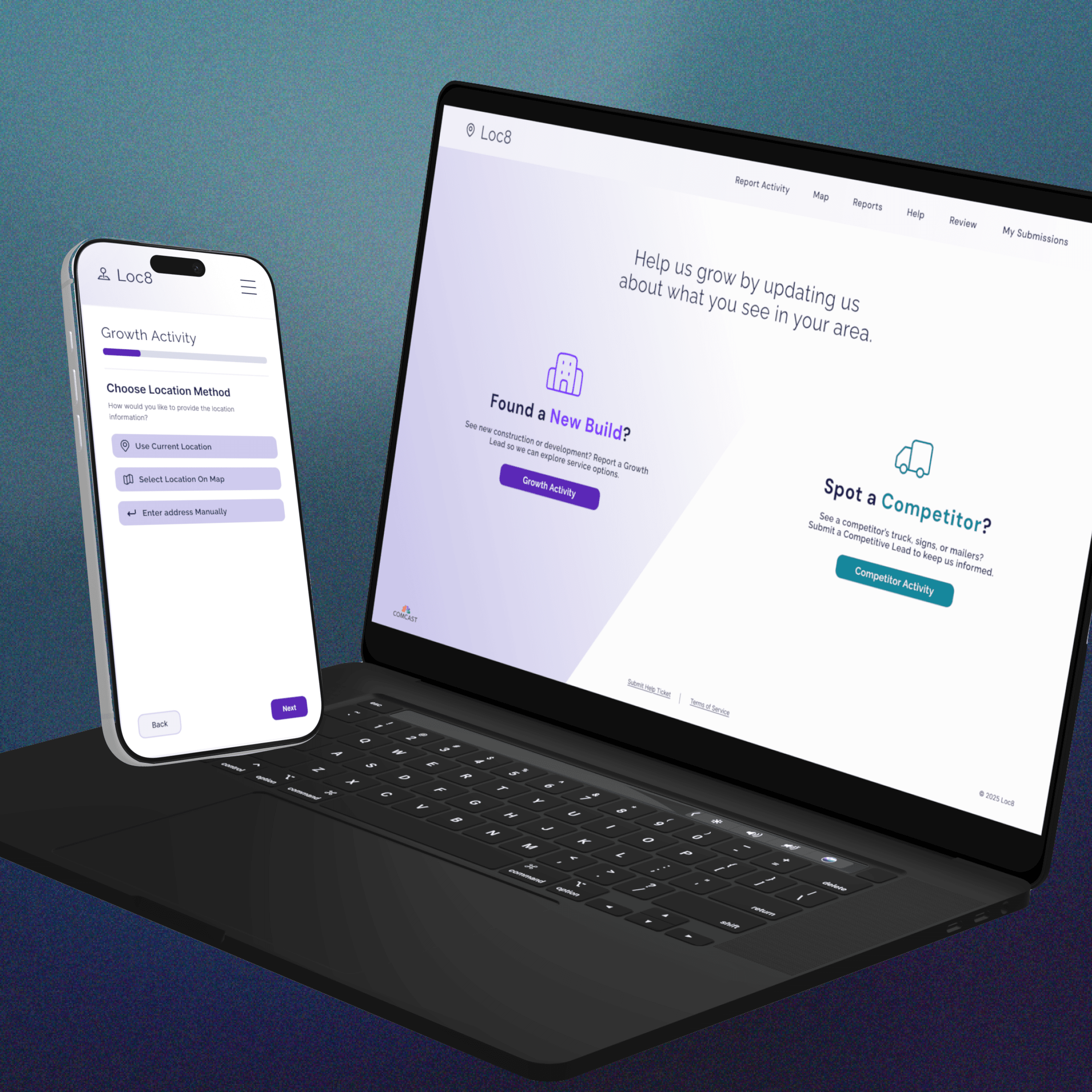 The Loc8 tool was used by employees to log and track site locations for new builds and existing service work. The original experience relied on a long, dense form that made it difficult to quickly input information.